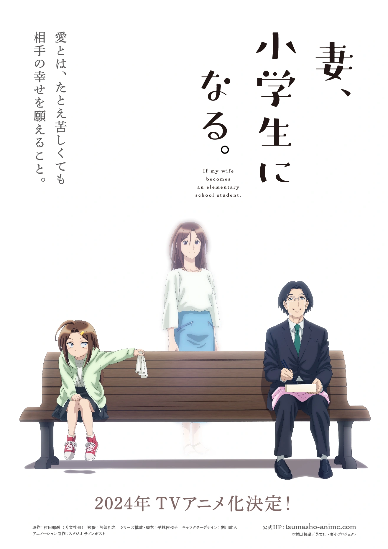 استناداً إلى سلسلة المانغا من ابتكار يايو موراتا المتسلسلة في مجلة Manga Times الأسبوعية منذ 2018. يأتي الأنمي الجديد If My Wife Becomes an Elementary School Student من إخراج نوريوكي آبي (Yu Yu Hakusho) في ستوديو Signpost، مع تولي ساواكو هيراباياشي (Delicious Party Precure) التنسيق الكتابي، وبتصميم شخصيات من قِبل ناريهيتو سيكيكاوا (BEM)، بينما يأتي الإخراج الصوتي بواسطة كييتشيرو ميوشي، إلى جانب هيروكو ياماساكي في مهمة تأليف الموسيقى.